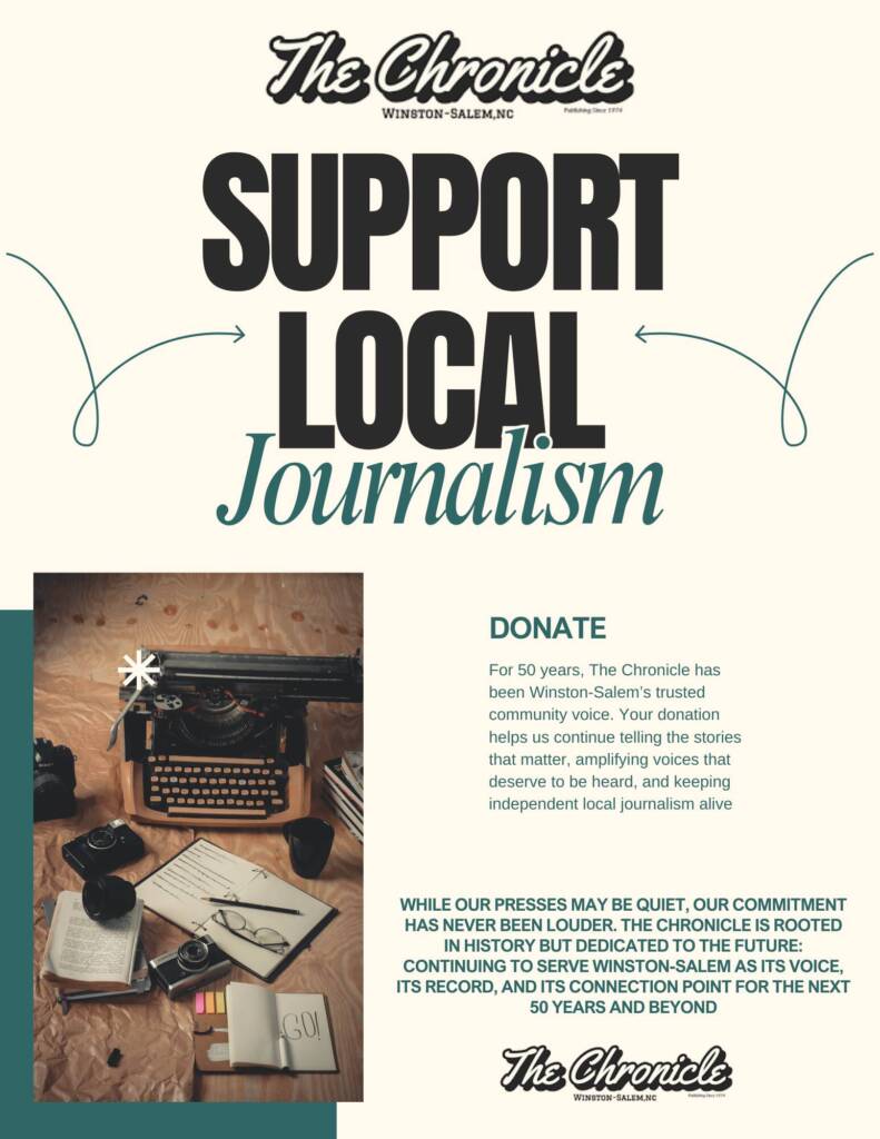 For 50 years, The Chronicle has been Winston-Salem’s trusted community voice. Your donation helps us continue telling the stories that matter, amplifying voices that deserve to be heard, and keeping independent local journalism alive.