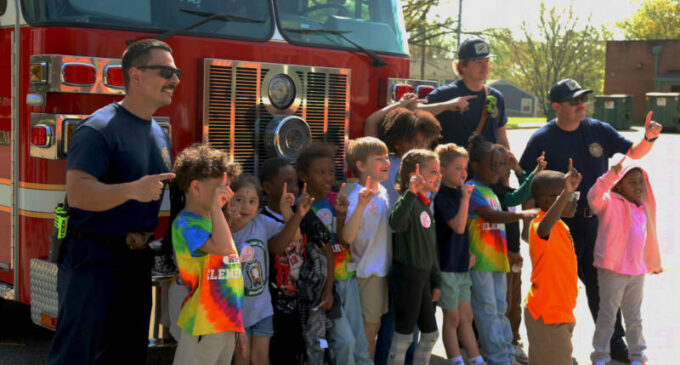 From there, we headed for the public education session. Nestled between the sheriff’s black Dodge Charger and EMS ambulance, we all lined up in front of the engine. Josh carried a stack of large, laminated posters that highlighted the many ways to become a firefighter. Groups of elementary school children took turns gathering around, asking questions about how firefighters get the water to extinguish flames, if the firefighters could turn on the sirens, and if the crew were “real firefighters.” But the kids were not the only ones who had been interested in learning more about their local fire department; one teacher had inquired about how busy the firefighters were in Winston-Salem. Josh explained how at times when they were their busiest, they’ve had up to 26 calls in a single day. After listening to firefighters explain how smoke detectors work, multiple siren demonstrations, and valiant tales of breaking down doors of burning buildings, many of the kids discovered a newfound excitement and respect for firefighters.